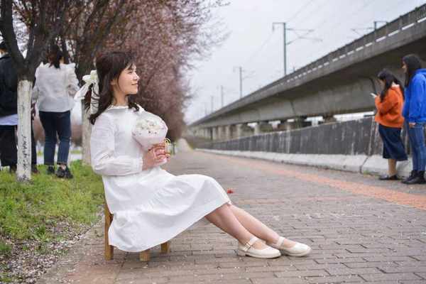 紫叶李花比樱花开的时间要早几日,花期短,只有十几天,不少游客趁着这最后几日的花期赶来打卡。记者注意到,路边的花树下一位女孩正坐在一张小椅子上拍照,这个位置刚好可以将紫叶李花和旁边经过的列车同时收进画框。列车飞驰而过时,为她拍照的摄影师刘先生狂按快门,力求抓拍到一张最漂亮的照片。