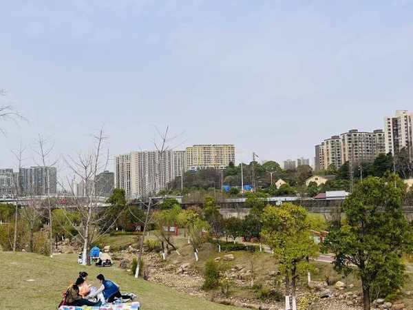 这里毗邻京广线,在草坪的左侧,经常可以看到有客运或货运的火车慢慢驶过。记者发现公园的草坪上有很多帐篷,不少游客在这里春游、露营、野餐,草坪附近还有一处专门为儿童提供的游乐设施,不失为一个遛娃的好去处。公园入口处有告示牌提醒,公园里禁止放风筝、气球等,维护京广铁路运输安全。