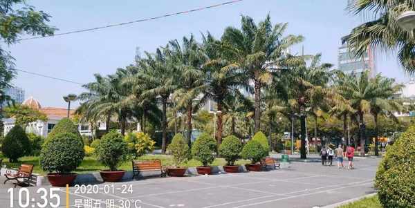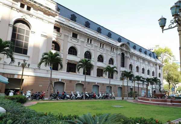 我们首先来到胡志明市委员会大厅。它于1908年竣工,建筑风格受国外风格影响,整个市政厅只有两层,除了屋顶的红色,市政厅大楼只有黄白两色,但外墙、门框和屋檐等部位布满了以国外英雄人物为题材的浮雕。市政厅前的一个小型广场有雕塑和花园。