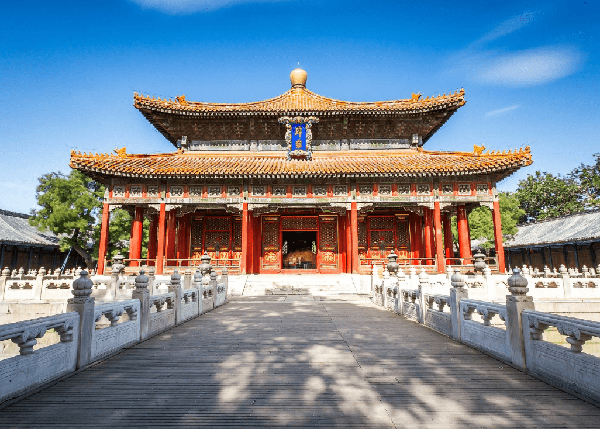 国子监作为元明清三代皇帝讲学的地方,其琉璃牌坊又称“龙门牌坊”,是全国唯一一座为教育而立的牌坊,正反两面均为皇帝御题;辟雍大殿是皇帝讲学的地方,建筑四面环水,正面挂着乾隆皇帝写着“辟雍”的匾。