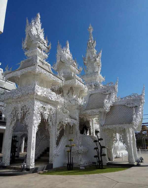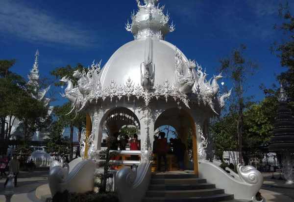 让我非常感动的是作者的自述:“我修建寺庙以来,从未接受过任何人的奉献,无论是政府机关,民间组织还是富豪。我不听命于任何人,不受金钱诱惑,不受别人影响,因为我的夙愿是将我的生命、潜能以及我所拥有的财富馈赠予我挚爱的祖国。”我想,作者的目的达到了,只要看来自世界各地诸多的游客只要到了国外便会来观赏白庙,就知道作者的作品的成功,任何不带功利的,具有独立思想的杰作都是伟大和不朽的,这就是我观赏白庙后的体会。