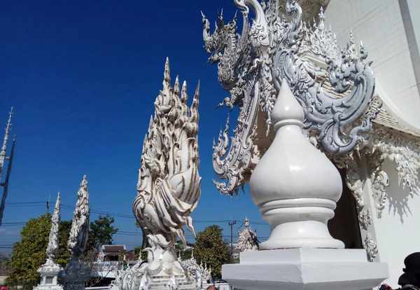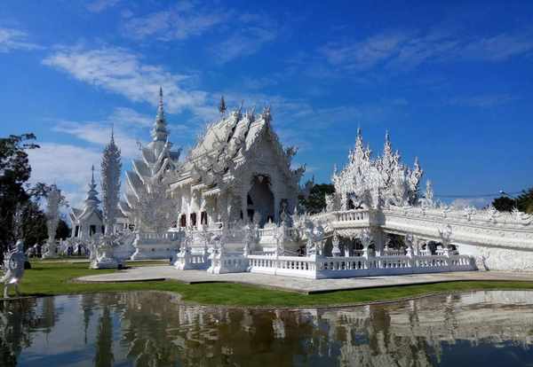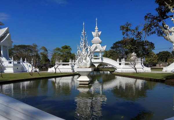白庙其实只是俗称,真正的英文名叫WatRongKhun,汉语为龙昆寺、灵光寺或白龙寺。这座惊世骇俗的宗教建筑是始建于1998年的现代建筑,是国外著名建筑师AjarnChalermchaiKositpipat耗尽毕生心血创造的他人生中最伟大的作品。白庙的出现让越来越多的人知道了泰北小城清莱,越来越多的游客像我这样愿意专程来一睹她的芳姿。