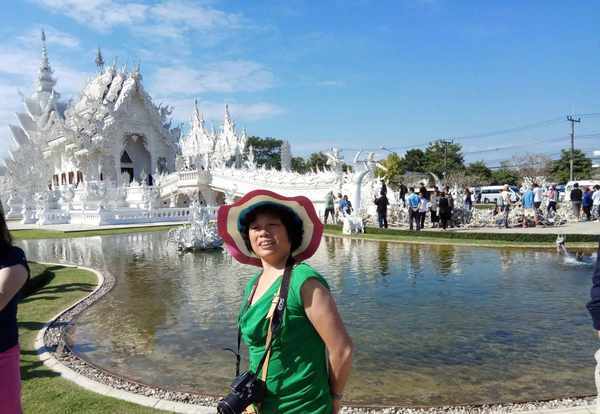 到了国外的第三天,女儿在国内就已经为我们预订了去国外清莱的白庙的一日游,而女儿一家由于外孙还小就带去大象学校看大象。