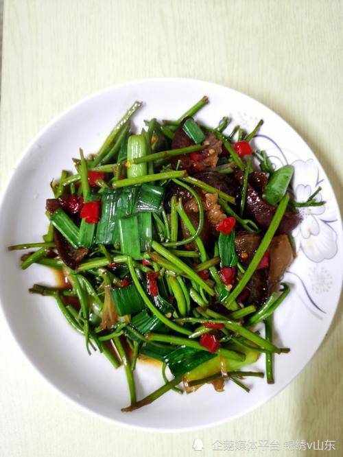 韭菜一把)、油豆腐3块、干辣椒8颗、蒜米6粒、味极鲜一勺、食盐1勺。