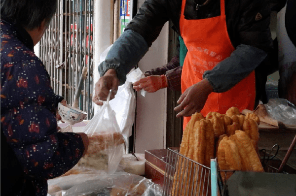 还有人经常自带碗盆,赶早来装早饭,带回去给家人吃。“这里的早饭很便宜,家门口的老店吃得也放心。”