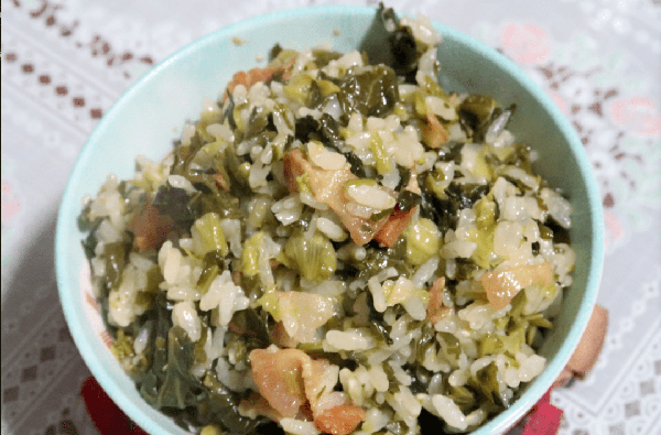 小时候吃的菜饭是用土灶烧的,满满的烟火香,一口下去咸香四溢。