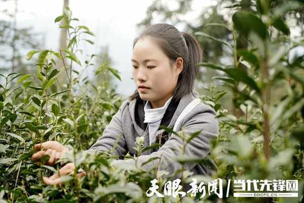 高山春露早,茗树发新芽,放眼青山绿,层层满坡涯。正是春茶采收的时节。3月4日,冉桂琴处理好公司的工作后,又来到合作社带动的茶园里,指导村民采收茶青。