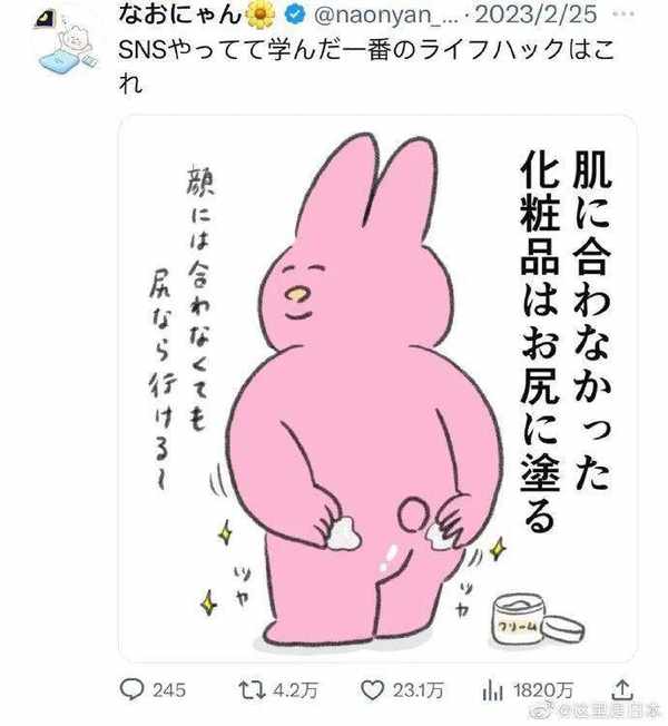 在网上学习到的。不合脸的化妆品,可以用来涂屁股@naonyannaonyan
