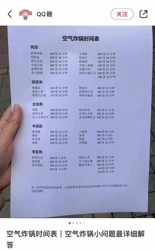 超详细空气炸锅烹饪时间&温度表,懒人福音!@美味肉蓉麵