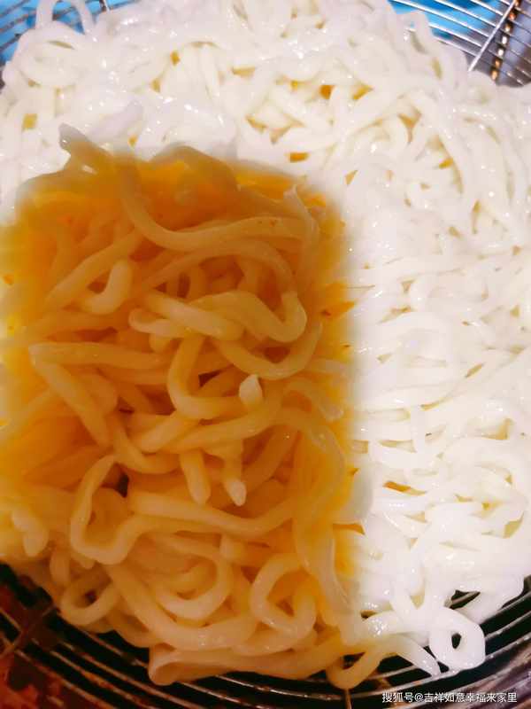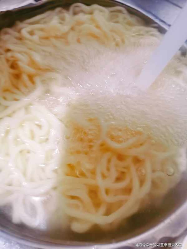 锅中烧水,水沸腾后,放入一点点盐,再放入面条,面条煮熟后捞出,面条捞出后直接过凉水,然后放在一旁控干水分即可。