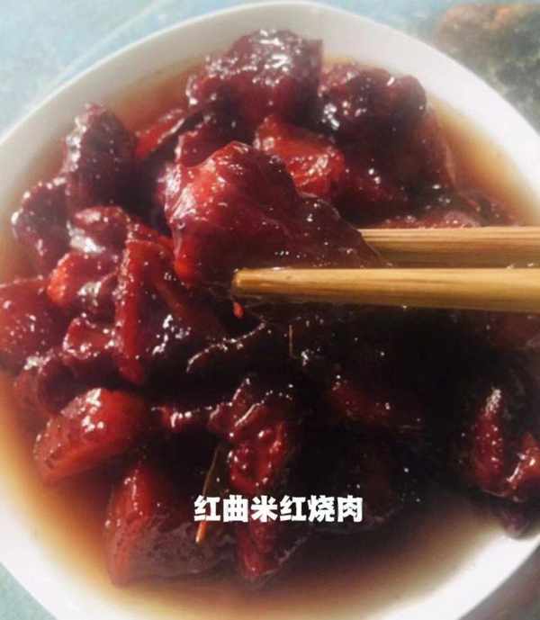 红曲米红烧肉 将红曲米打成粉或直接购买红曲米粉,将五花肉焯水后放入炖锅,加葱姜及花椒、八角、香叶、陈皮等调味料,加几勺红曲米粉,大火烧开小火慢炖1-2小时,出锅前放少许盐调味。