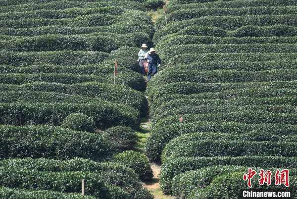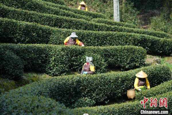 中新网杭州3月13日电(钱晨菲)13日,杭州西湖龙井茶迎开采首日。在杭州市西湖区多处茶山上,记者看到,茶农们已陆续开始采摘今年第一批西湖龙井茶。