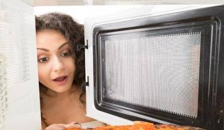 第4点,披萨汉堡冷了之后就会变得很干,只要在微波炉加热时放一杯水就可以解决啦!