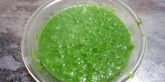 3.连同艾草水一起放入料理机内搅打成艾草浆备用。