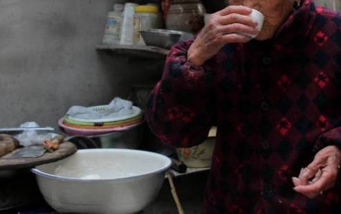 107岁的老母亲,此刻正在给自己的儿子做饭,用的是老灶台,厨房很是简陋,但是老母亲却能在这样简陋的环境中给自己的孩子做出美味来!这是老人做包子的照片!做的包子馅非常简单,把粉丝切碎加点猪油拌拌就可以了。