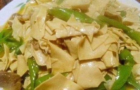 青椒炒千张丝,这是一道四季皆宜的下饭快手菜。千张即百叶,有防骨质疏松、防血管硬化、防心血管疾病、护心之功效。