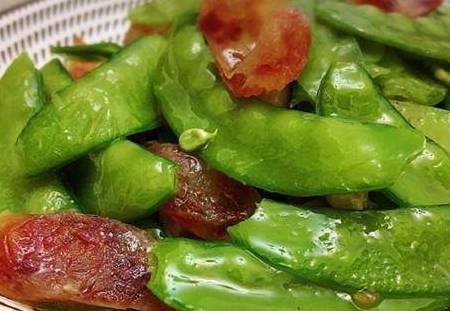 我今天给她准备了兰豆炒腊肠。这个腊肠是我自己做的,老公说比外面买的好吃多了,很有嚼劲的肉质。