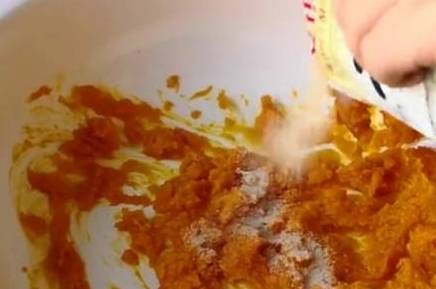 将500克南瓜切成块状,用蒸锅大火蒸熟.搅拌成南瓜糊.加5克酵母.