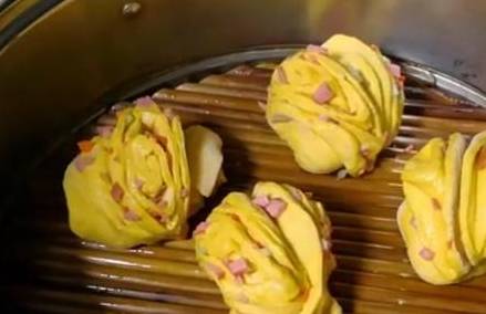 香喷喷的南瓜花卷出炉啦,超级松软。