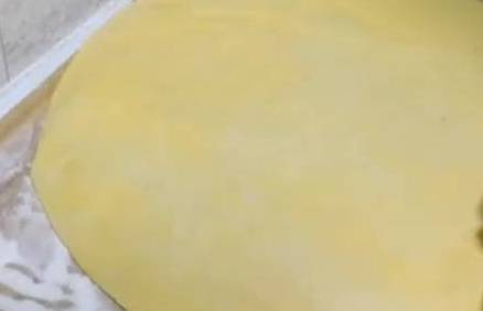 将发酵好的面团按压排气,再将面团擀成面皮。