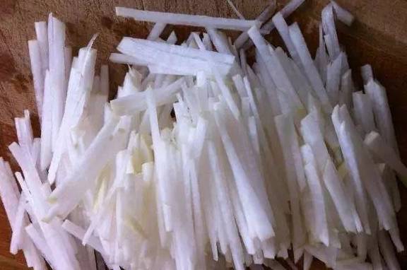 生吃萝卜可当水果,而凉拌萝卜丝作咸小菜,亦是家常菜。妈妈常是生切萝卜成薄片,切为细丝,略腌,沥水,加勺糖,伴以滴翠的芫荽,清清白白的一盘,犹如初雪覆苍苔;末了,少许白醋、麻油一淋,端的是色、香、味俱全。夹起一筷,又一筷,不论过粥,还是下饭,味蕾大开,不亦乐乎!