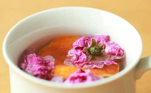 做法:与之前的茶汤不同,这道玫瑰陈皮茶重在“焖”而非煮,因此只需要我们准备一个带盖杯子,先放入玫瑰花和陈皮,然后加入滚烫的开水焖泡至凉即可饮用。