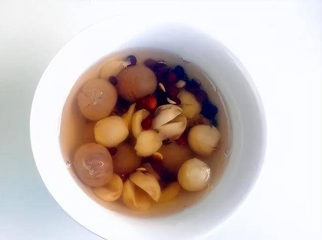做法:先取出圆锅一口,然后将酸枣仁加热炒干,接着加入清水烧开,水开以后放入百合、茯苓、枸杞、莲子、大枣、桑葚和桂圆进行炖煮,炖煮时需保持小火,当炖煮时间达到半小时以上的时候,即可取出饮用。