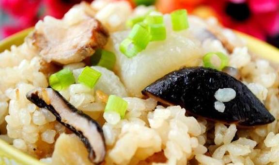 8.米饭焖好后,表面倒上之前炒过的洋葱碎。福建泉州萝卜饭的做法步骤1010.再撒上小葱拌匀。