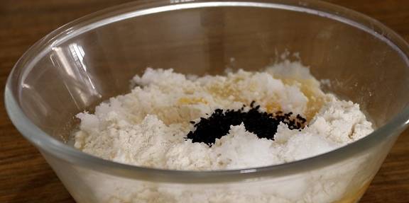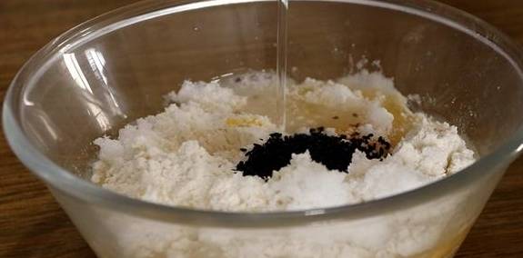 面粉,鸡蛋,白糖,黑芝麻,食用油,水。