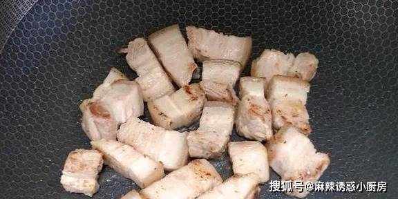 步骤一:首先先从五花肉开始入手,把五花肉洗干净后切成小方形(切的稍微均匀一些,这样后期烹饪能一同入味,同时出锅也会比较好看)