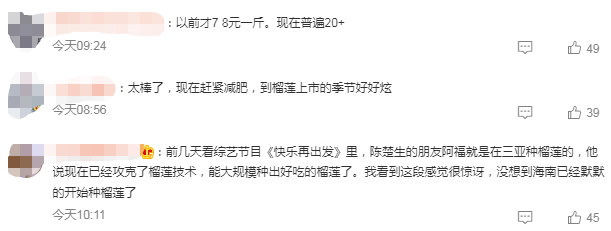 “再过一两年,我们的榴莲就进入盛果期,我们还准备用3到5年时间,打造五万亩的榴莲产业园,预计增加50亿元产值,让其成为与三亚芒果比肩的甜蜜产业。”三亚市农业农村局负责人说。