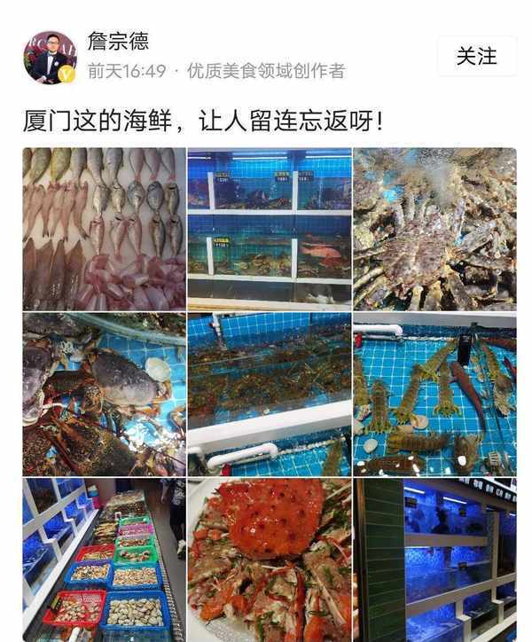 厦门的海鲜特别多,新鲜打捞上的海鲜格外的味美多汁。詹宗德又非常好这一口,这就趁着难得的出差机会,好好地在当地享受一下休闲时光,当他晒出刚从海里打捞上来的海鲜,房间有人留言说:这跟我们海南的海鲜没得比!意思是厦门的海鲜不如海南的海鲜。