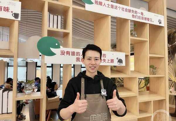 “您好,我是聋人咖啡师,很高兴为你做一杯咖啡……”提示板上,一行醒目的字提示着这家咖啡店的与众不同。