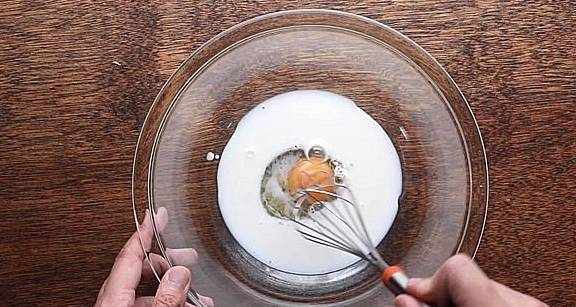 1.准备一个常温鸡蛋,打入碗中,然后倒入80毫升牛奶,用打蛋器搅拌均匀。
