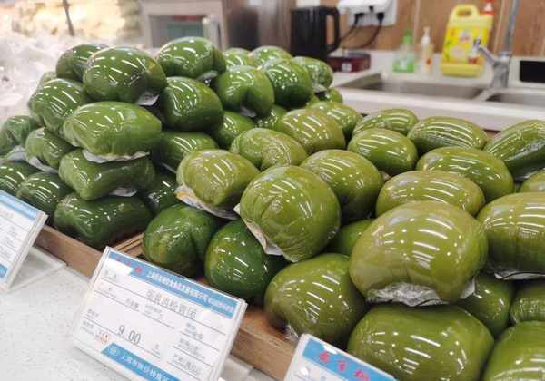 “宁宁”在玉屏南路九华的乔家栅小区看到,绿如碧玉的青年团排列整齐。据店员介绍,青团作为江南特色小吃,原本主要在清明节前后销售,但今年店里的青团从元宵节就开始上市了。