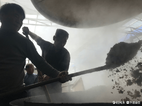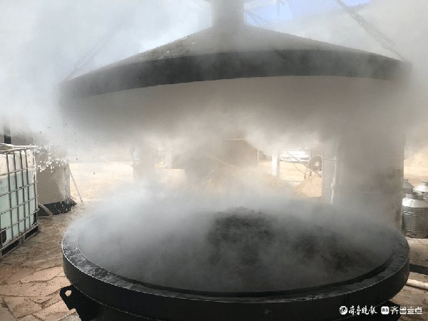 记者 陈文进 12日,在济南市中区裕龙酒坊,来自安徽亳州的酿酒师傅们用传统的酿酒工艺蒸制白酒。烧锅开启时,热气蒸腾,酒香扑鼻。