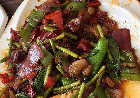 回锅肉,裁量也是一样大的,但是味道有些重了,尤其是对于我们这些南方人来说,所以这道菜也是剩下最多的菜,尝了几筷子就完全没有人动了,首先是因为菜量很大,其次就是每种菜的菜量都很大,看起来亚历山大啊!看到这比脸还大的盘子我们当场就懵了,北方人果然是实在啊!河南出差吃家常菜,4人点5道菜,点菜时服务员笑了,上菜后我懵了