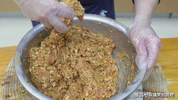 无论是芹菜馅还是香菇白菜馅还是莲藕馅,西葫芦馅啊,都要先打好肉馅再放配菜。这样既不容易出水还能更好的融合。