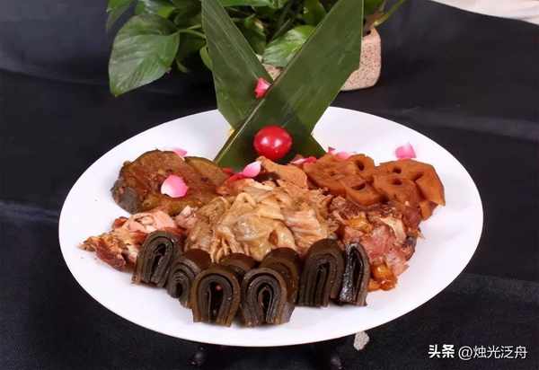 3、小火加热3小时后关火,不掀锅盖焖制一晚,第二天开盖后淋入香油150克,即可取出食材改刀上桌。