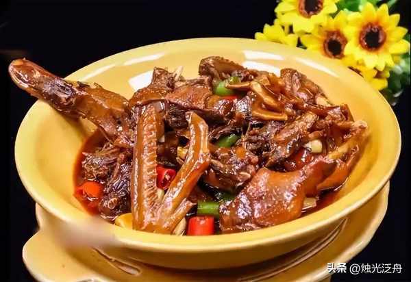 色泽红亮,蒜香浓郁,鸭肉软烂,麻辣浓香。