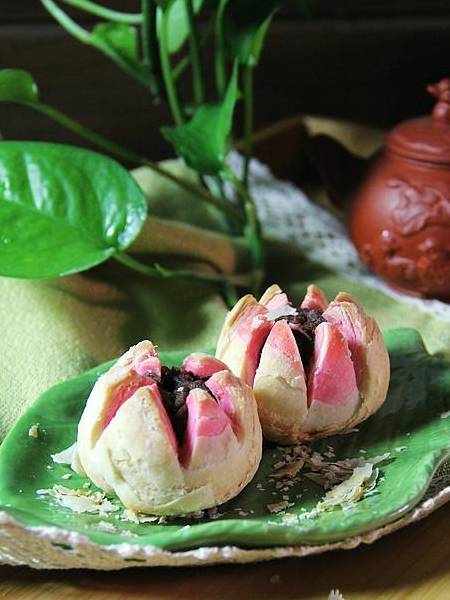 传统的荷花酥是用油低温炸制而成的。因为炸过的荷花酥花瓣是绽开的非常漂亮。但是油炸食品对身体不利,为了身体健康改为烤箱版的,成品出来颜值一样的漂亮,口感一样的酥香。