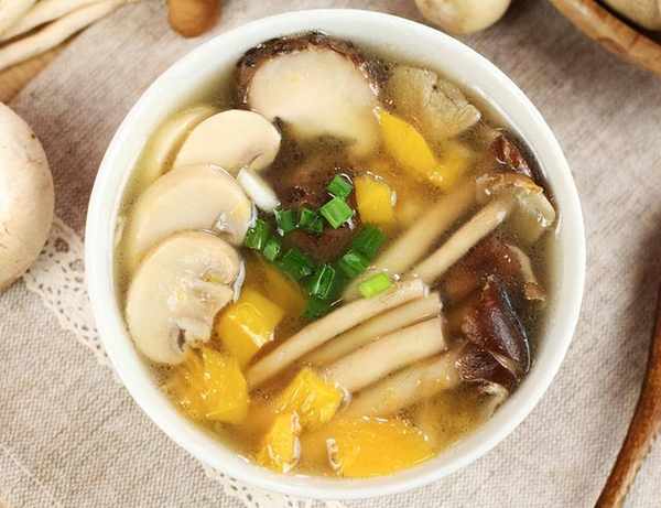材料:南瓜、杂菌、葱花、水、盐、油、鸡粉
