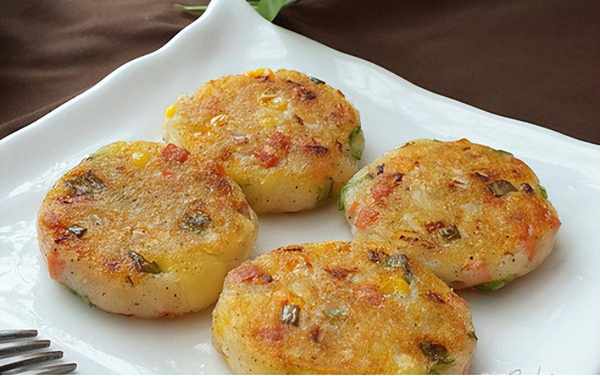 3、搅拌均匀后直接用手造型,起油锅煎到两面金黄即可。