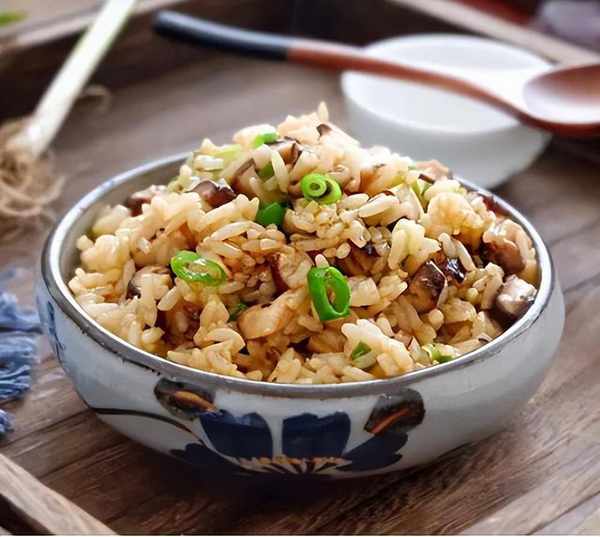 食材:干香菇、米饭、姜 、料酒、生抽、老抽 、白糖