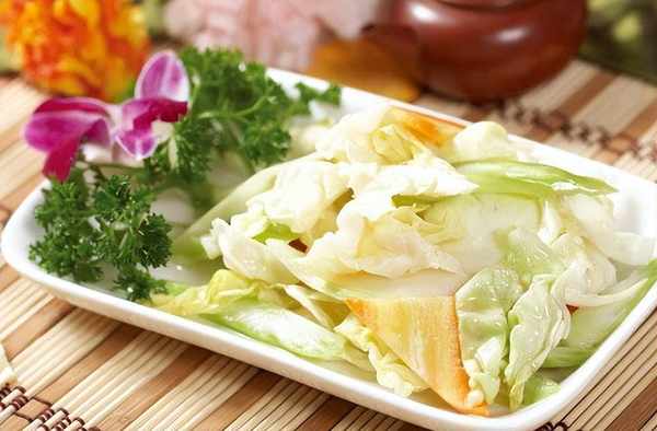 1、卷心菜对半切开用手撕小片,洗净沥干;