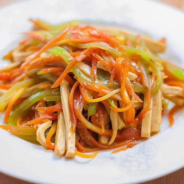 5、加入干豆腐丝,盐,炒匀,快速加入韭菜,炒匀即可。