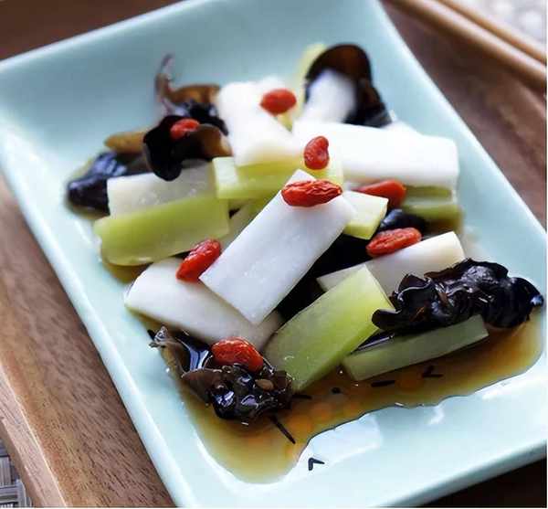 做法:1、莴笋去皮切段后,放入凉白开里浸泡,加少许盐;
