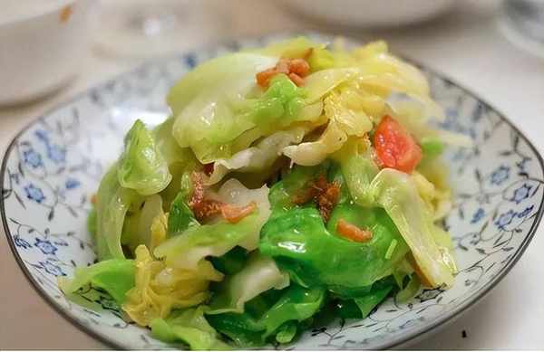 3、起锅热适量油,倒入虾米爆香,放入卷心菜;