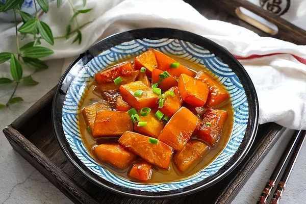 材料:南瓜240克、酱油2茶匙、盐适量、葱花少许