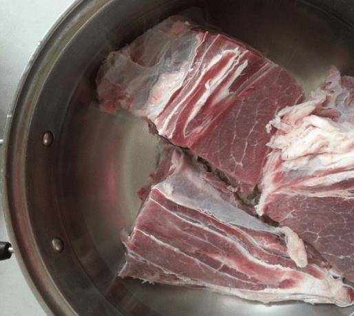 牛腱子肉在红烧酱油中浸泡一个晚上后,将牛腱子肉用冷水下锅焯水,在焯水的过程中会有很多血沫,将这些血沫撇干净,这样焯水过后的牛肉味道更纯粹,没有膻腥味,也更干净。接着将焯好水的肉用温水冲洗干净,装盘备用。